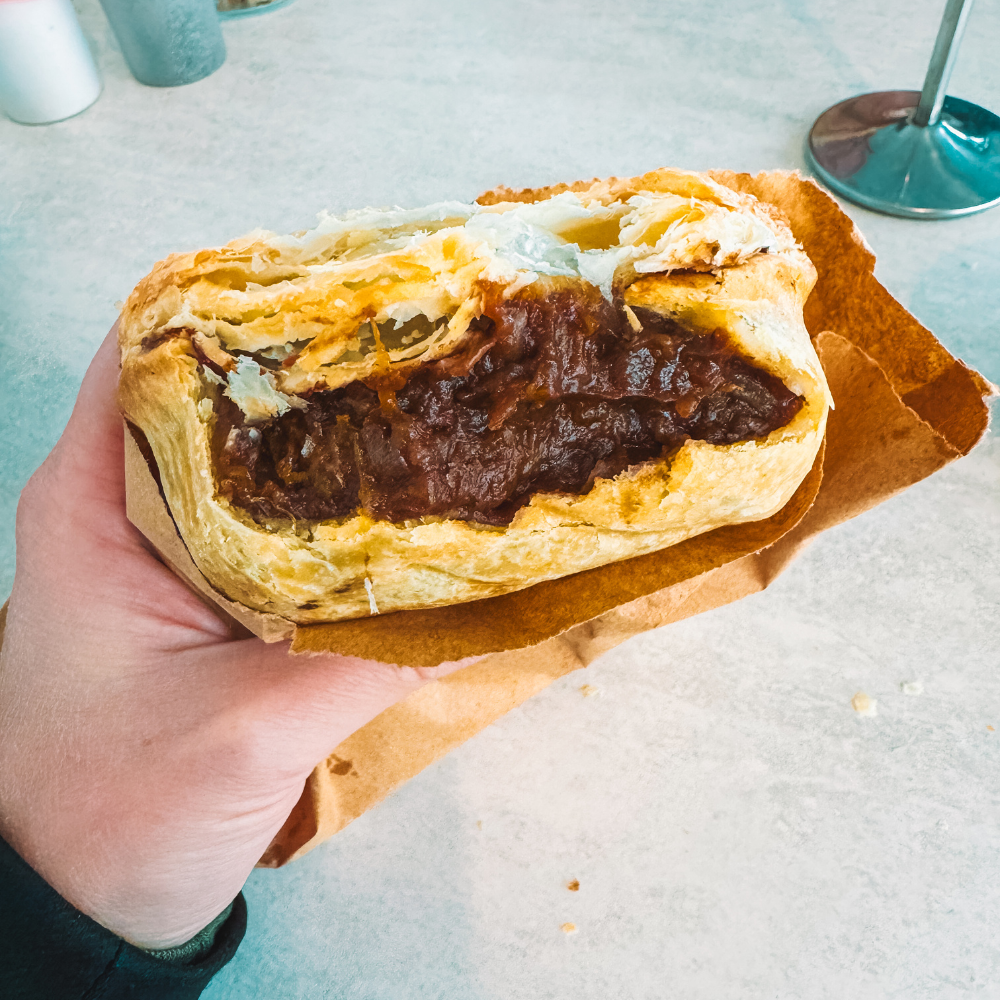 The filling was piping hot, the venison was super flavourful, soft, and clearly cooked in red wine. The pastry was flaky and firm enough to hold everything together without immediately collapsing or soaking through. Seriously amazing. Of course, there are other pies to choose from, but this is the one I recommend getting!