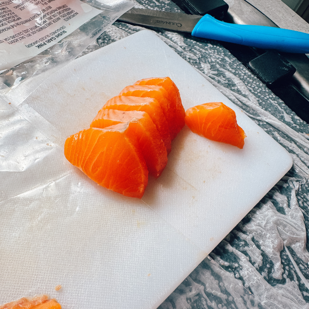 I was originally planning to catch my own, but since I’m not super into fishing and really just wanted to eat it, I opted for a sashimi fillet from their store. Price-wise, this was the most efficient, as we cut it up ourselves and pre-purchased wasabi and soy from the grocery store. The salmon was fresh caught and prepared that day, so it really couldn’t have been much better.
