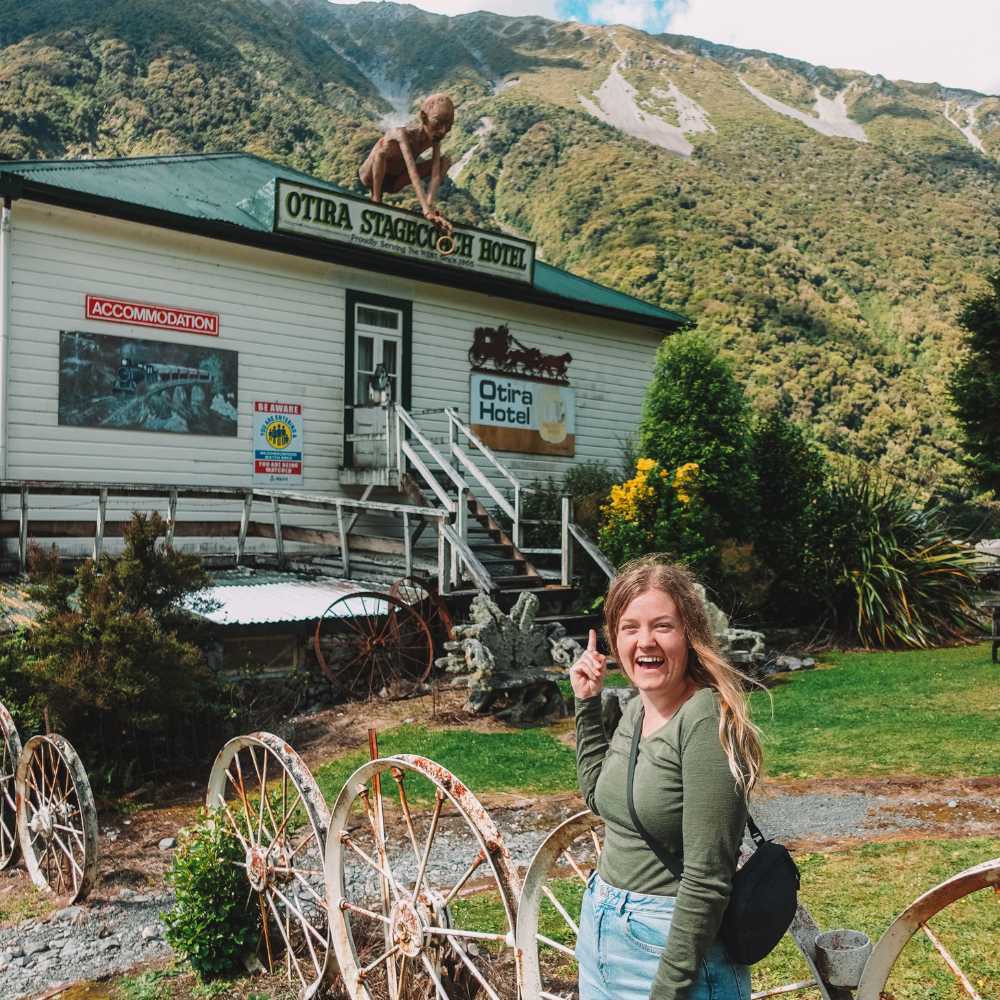This is hard to miss as it has a giant statue of Golem from The Lord of the Rings on top. The whole place is covered in old-fashioned nostalgia and even has animals outside in pens! I’d recommend you stop for lunch. I had their special whitebait fritter, which is a West Coast New Zealand classic.