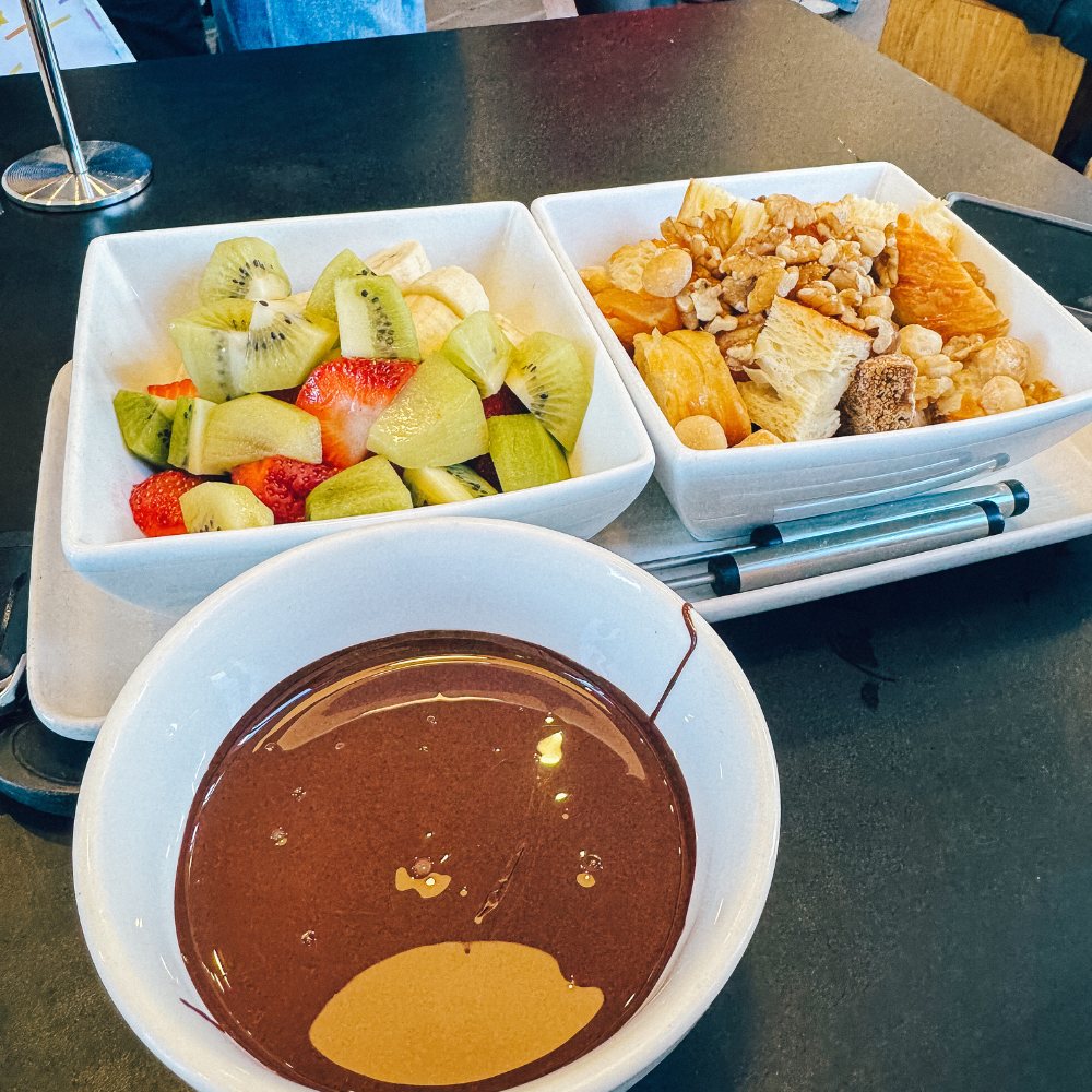 There are a few locations for Patagonia, but the one in Queenstown is right by the lake, so it’s beyond picturesque! They serve individual chocolates and ice cream, all made fresh in New Zealand. We ordered the dark chocolate fondue for two, as it was my friend’s childhood favorite. Realistically, next time I would just get chocolates or ice cream because it was way too big to finish, but it was still delicious.