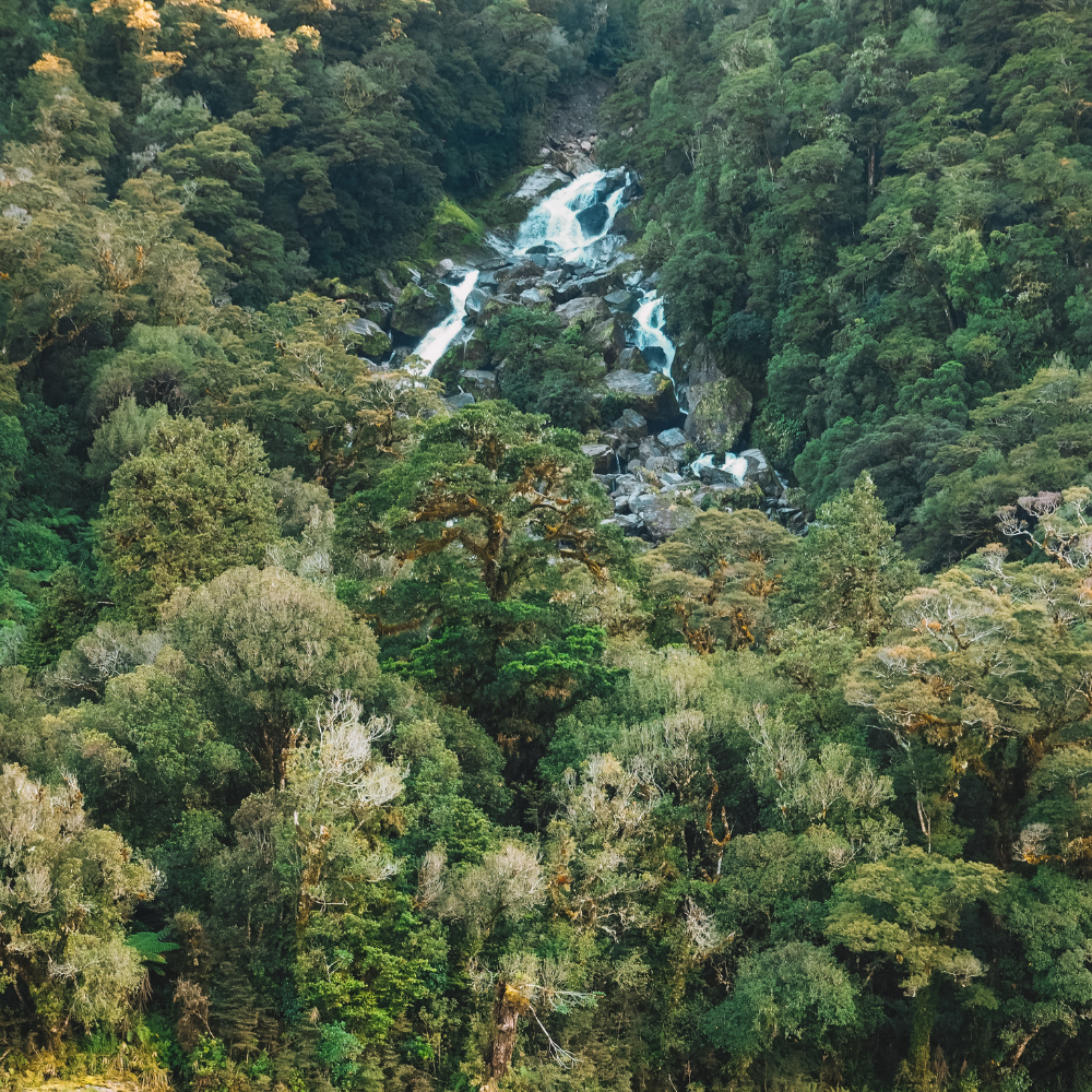 Thunder Creek Falls is a 28-meter (92 feet) waterfall that cascades into the Haast River. To get there, you need to walk from the car park about 200 meters (656 feet) to a viewing platform. The walk is filled with native silver beech and kāmahi forest! Once you reach the falls, there is a set of stairs you can go down if you’re able.